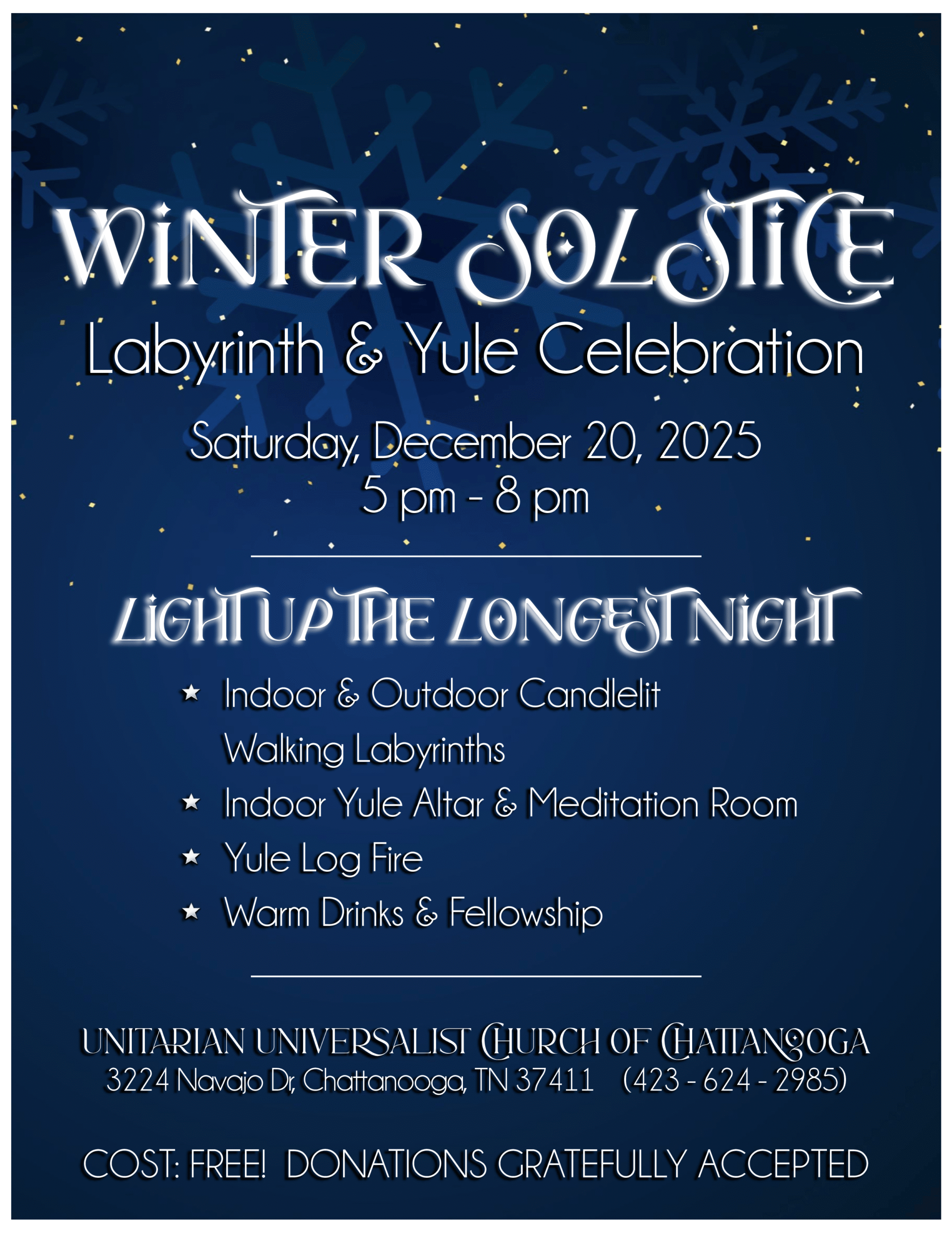 The Unitarian Universalist Church of Chattanooga is an inclusive liberal religious community dedicated to the Unitarian Universalist principles.